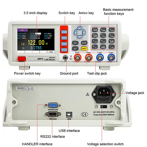 | Measurement range | L: 0.001 µH to 99999 H, C: 0.001 pF to 99.99 mF, R: 0.0001 Ω to 99.99 MΩ |