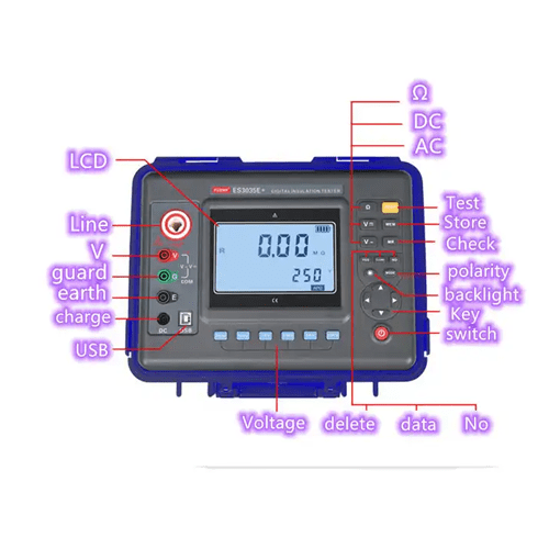 Rated Voltage 250 V, 500 V, 1000 V, 2500 V, 5000 V, 10 KV(ES3035E+)