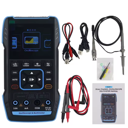 - The oscilloscope offers a 50M sample rate and dual-channel 10M analog bandwidth for accurate measurements.